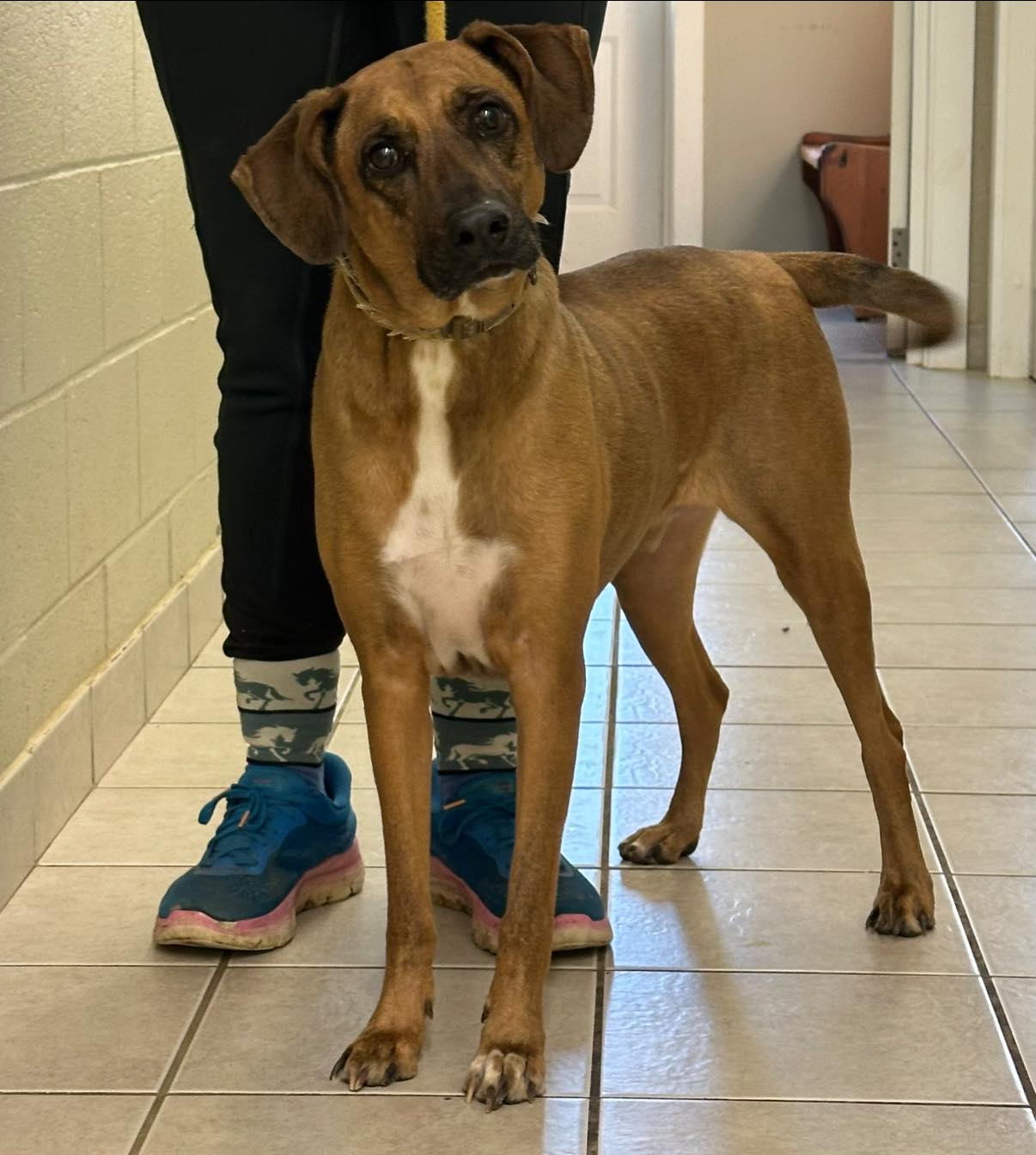 River is a 6 1/2 year old male hound mix weighing about 50lbs. He is good with other dogs and children.